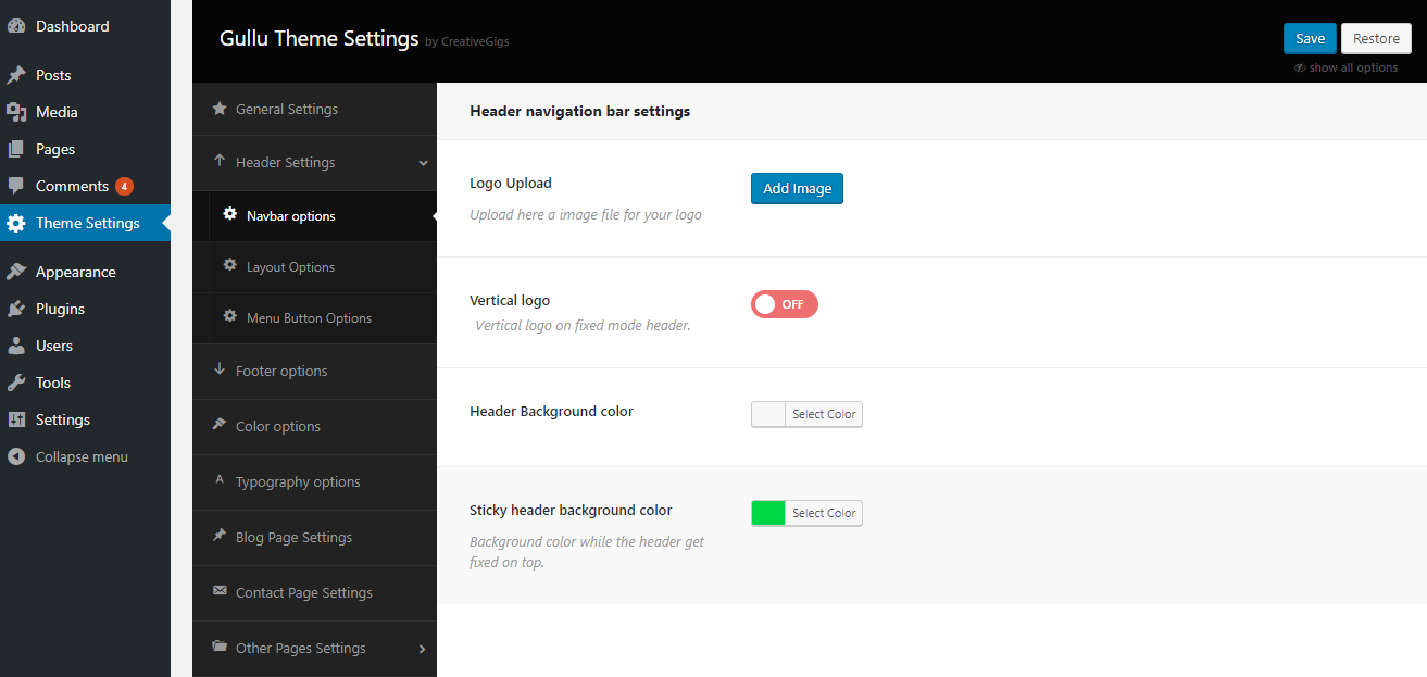 Header Settings Estimated reading: 1 minute 280 views In the Header settings section, you will get a lot of header customization options. In this section, you can change the logo and set the menu button, navigation bar settings etc.